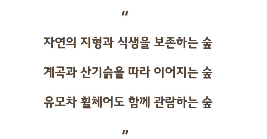 우리 숲의 식생을 최대한 보존하였고,