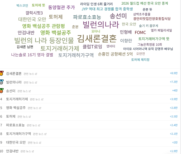 | 20250316 인기키워드 (1) | 2025.03.16 |
