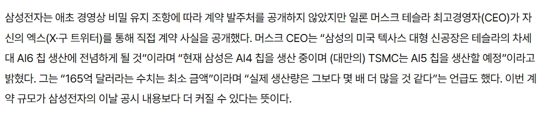삼성전자, 테슬라와 파운드리 계약 22.8조원 계약